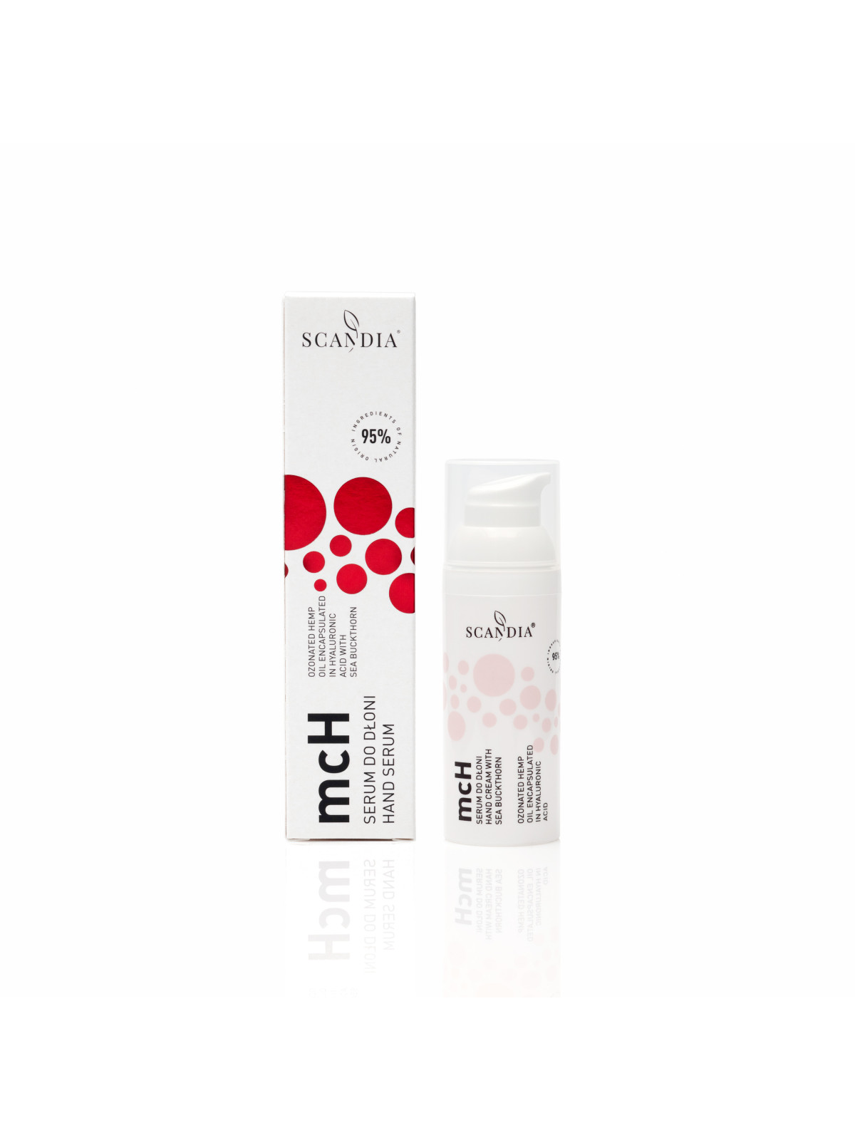 Odżywczo-regenerujące serum do dłoni z ozonowanym olejem konopnym mikrokapsułkowanym w kwasie hialuronowym. 95% składników pochodzenia naturalnego.
