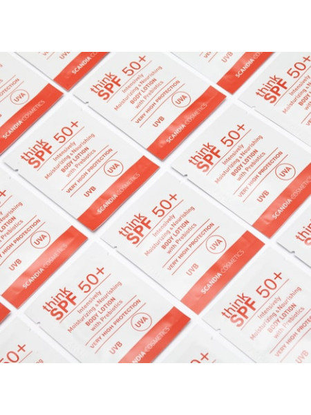 thinkSPF Intensywnie nawilżający i odżywczy balsam do ciała z prebiotykami w saszetkach 10 sztuk– Ochrona Słoneczna Gdziekolwiek Jesteś